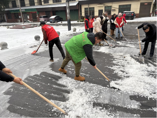 汉寿县沧港镇民政社工站社工参加除雪行动